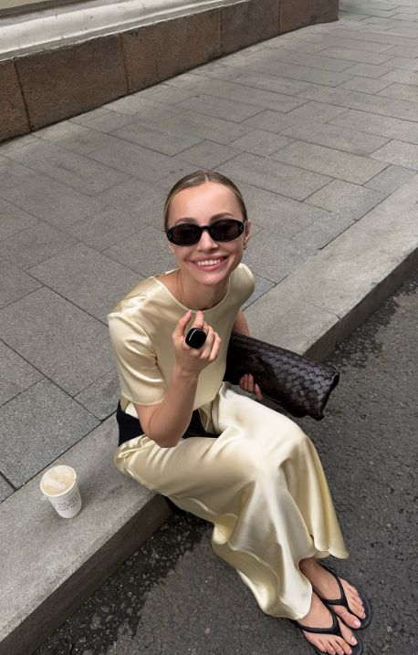 Toteme Satin Tee + Wide Leg Pants